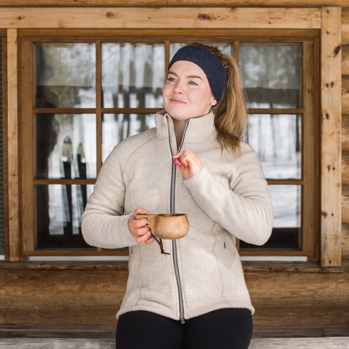 Mikromuoviton ja hiostamaton vaihtoehto keinokuiduille: sertifioitu 100% luomuvillafleece. Aito villa lämmittää kosteanakin. Se neutraloi hajuja, eikä sitä tarvitse pestä usein. Puhdas villa on myös paloturvallinen materiaali, joka maatuu täysin elinkaarensa päässä.